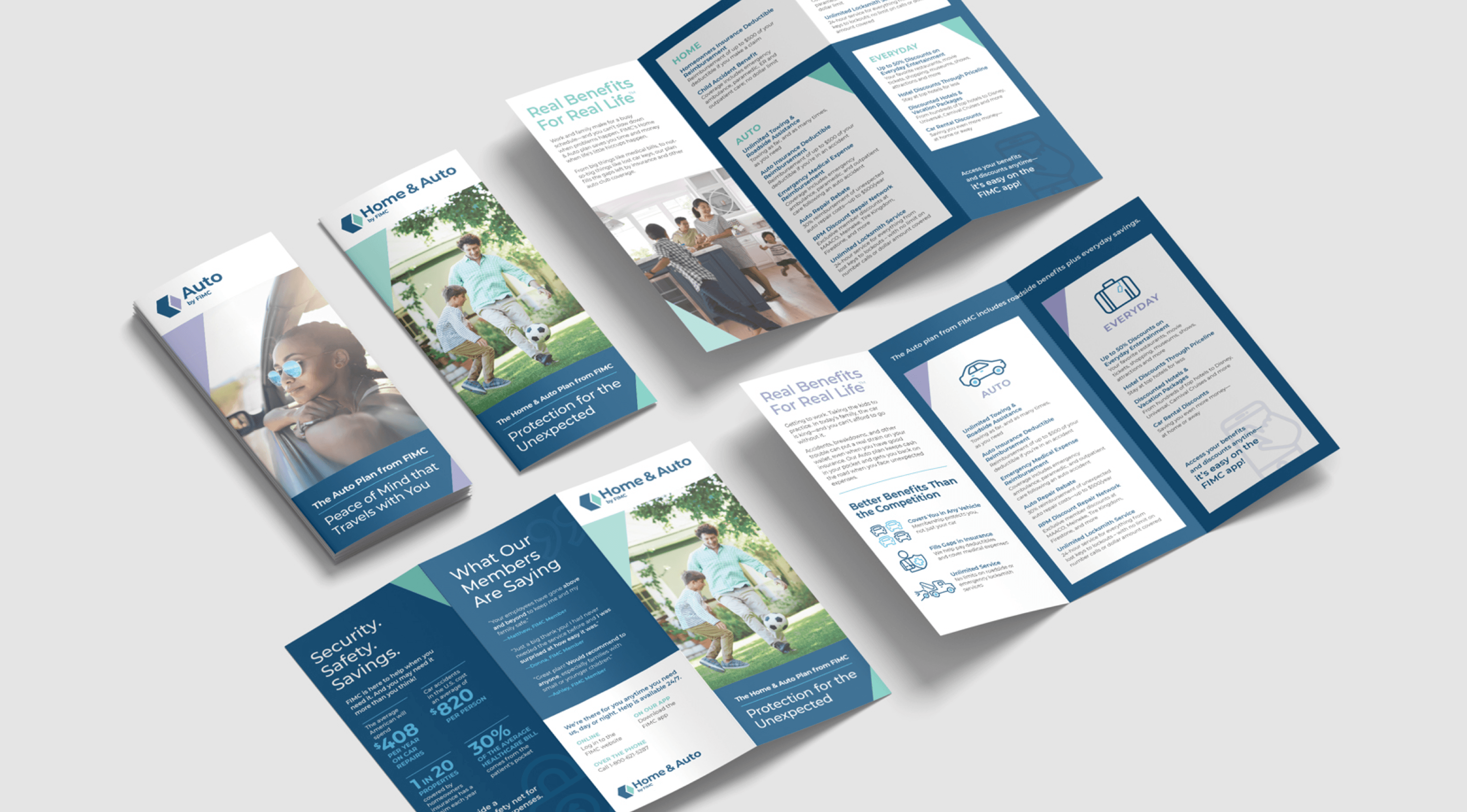 For over 40 years, FIMC has been providing membership plans that help fill gaps left by traditional home, auto and roadside plans. But despite offering plans that were practically teeming with useful benefits and serious savings, many responsible for selling the plans didn’t really know just how amazing the plans were and just how relevant they are to their customers’ needs. First, we worked to reimagine the visual brand—creating a visual system for the overarching company that extended to each of their products. After creating the visual identity, we helped them to relaunch their products by developing materials that would help with sales. This included animated educational videos and print brochures to explain the features and benefits of each membership plan.